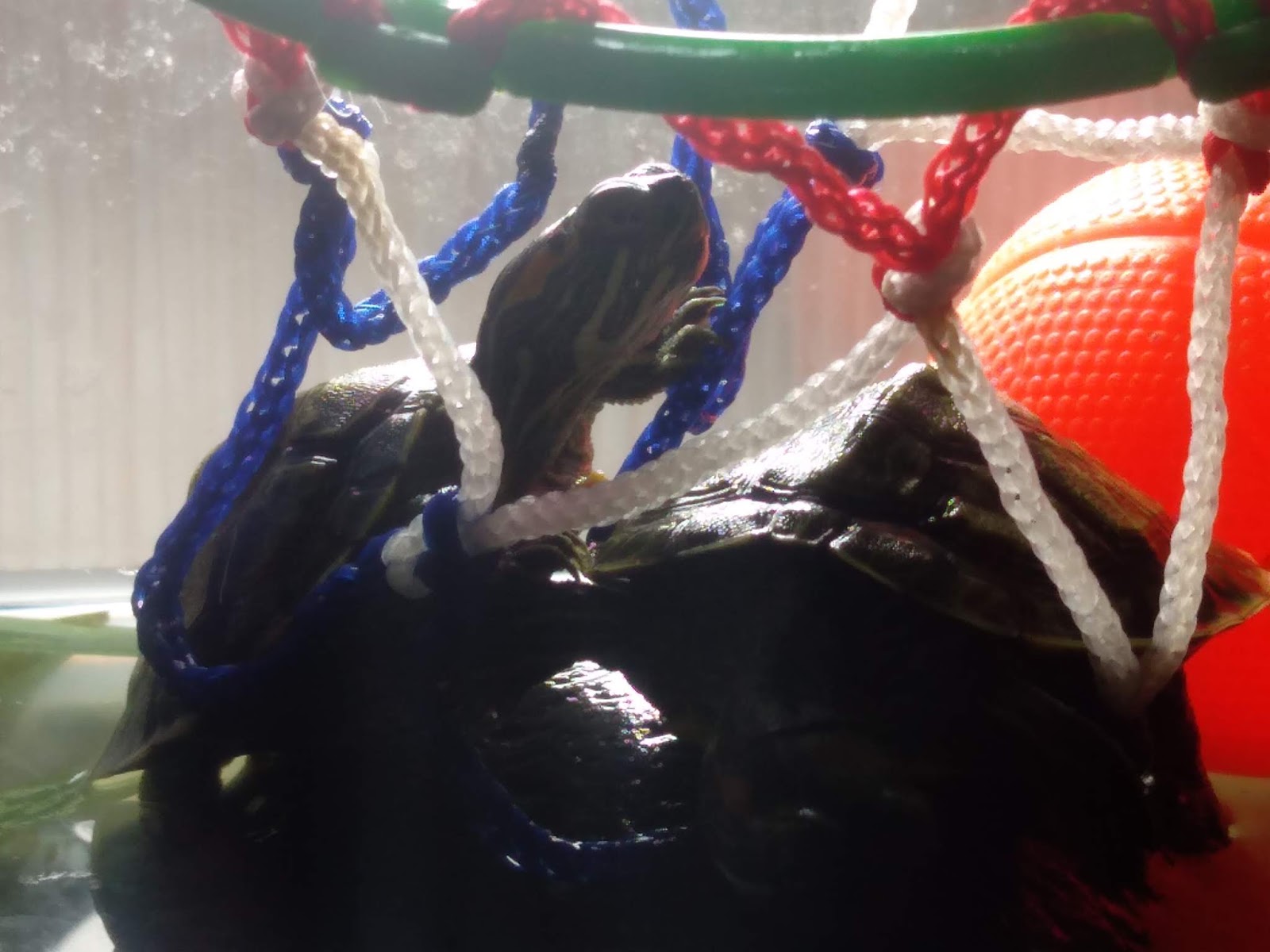 P.S. 拙見以為,任何漁業活動或其他海事活動使用的繩索用具宜以嚴審人類「兒童安全玩具」的高標加以品質管制,以便粗心大意、經常失手的人類一不小心將人工用具遺落在大海江河等大自然水體時,它們可以當成動物界的「玩具」而非「殺具」。以畫面中的小籃球框架而言,由於它本來就以「兒童安全玩具」的標準製造、審查、出廠,眾萌龜咬著玩、攀著玩、吊著玩、做體操或當吊床都不會纏住或卡住。人類若用守護人類自己嬰兒、幼童的心情守護自然界的其他生命,世界上會減少很多不必要的死亡悲劇吧!